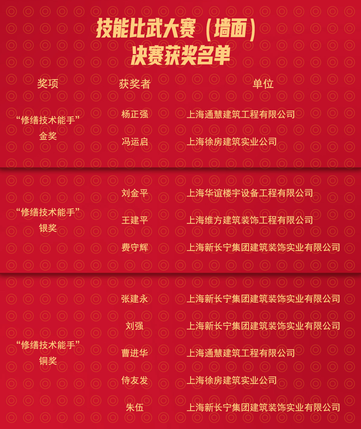 最終比賽獲獎名單出爐,上海維方建筑裝飾工程有限公司斬獲“修繕技術能手” 銀獎(個人)和班組項目一等獎、三等獎共計三個獎項。