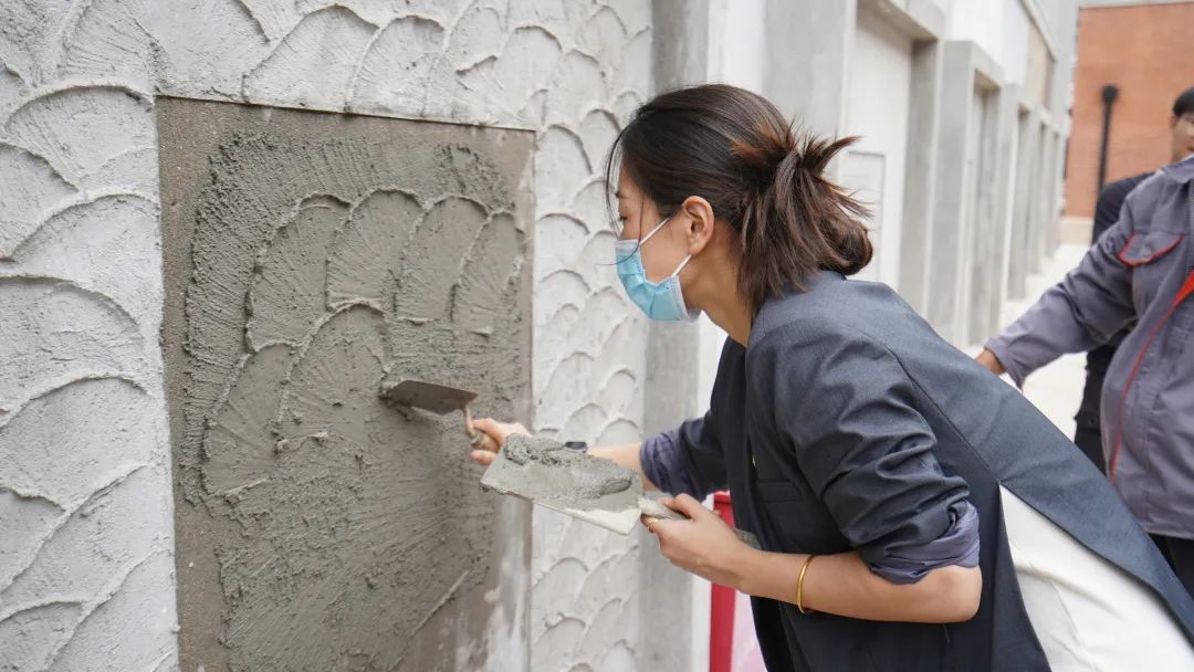 歷史建筑的修繕離不開工匠們的辛勤耕耘,他們以嫻熟技藝重現建筑細節,以精工匠心重綻建筑神采。活動現場,來自維方公司的工匠師傅為大家展示了魚鱗拉毛工藝。調制漿料,手腕一轉,著力一刷,魚鱗輪廓就這樣完成了,極具弧形美感。在場的參觀者們嘖嘖稱奇,在老師傅的教導下,大家也化身為工匠學徒,體驗了一回修繕技藝的實操過程,新鮮、有趣又有意義。