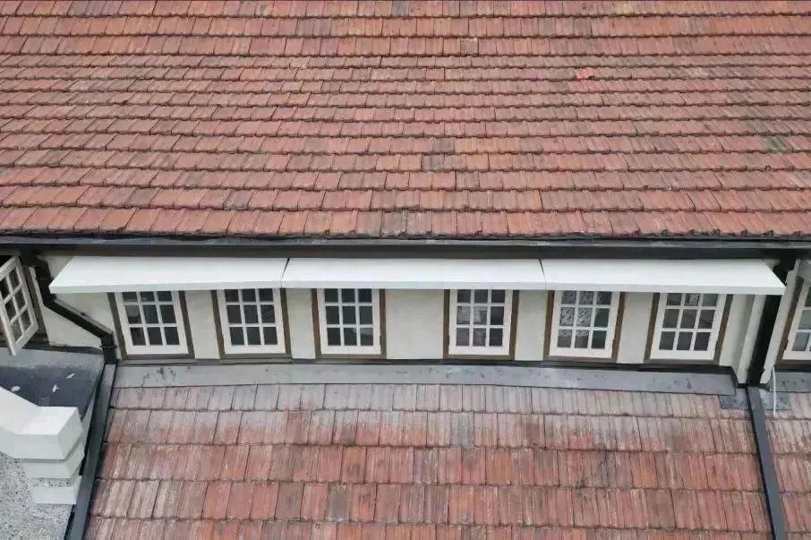 南立面作為內山書店的主要立面是本次修繕工程的重點,結合對歷史照片的研究分析,判定立面的原有樣式及材質,修繕團隊使用相應工藝進行修繕恢復;對于建筑屋面進行翻修,重做防水和保溫層,調整高低不平之處,并對山墻壓頂、雨水檐溝、天溝落、水管及老虎窗進行修繕。