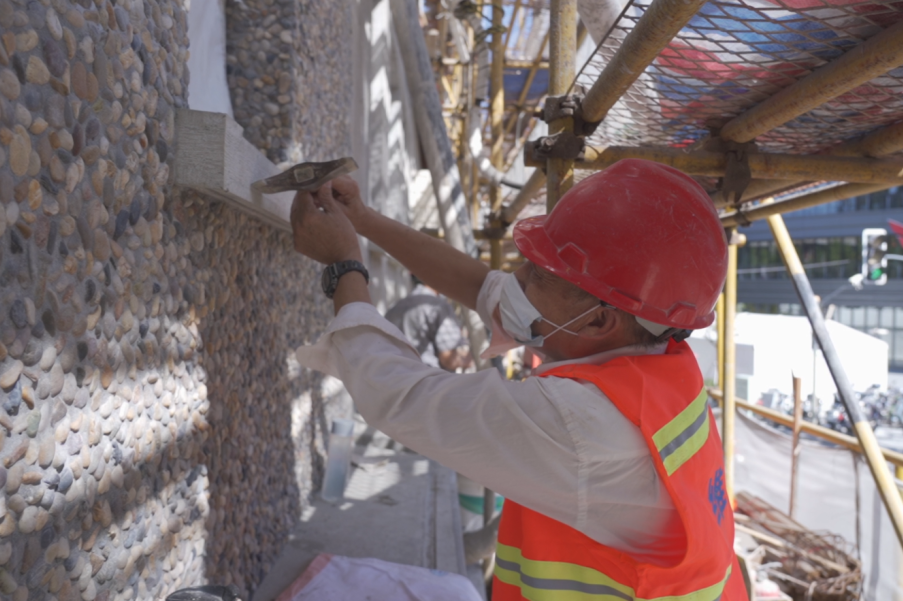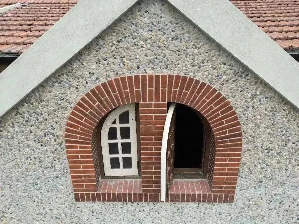 用鵝卵石工藝恢復立面原有卵石、紙筋灰材質? ? ? ? ? ? ? ? ? ? ? ? ? ? ? ? ? ? ? ? ? ? ? ? ? ? ? ? ? ? ? ? 用白色耐候漆冰裂紋恢復立面原有木質門窗